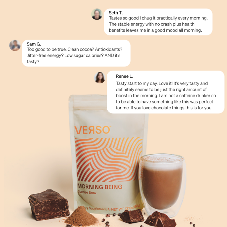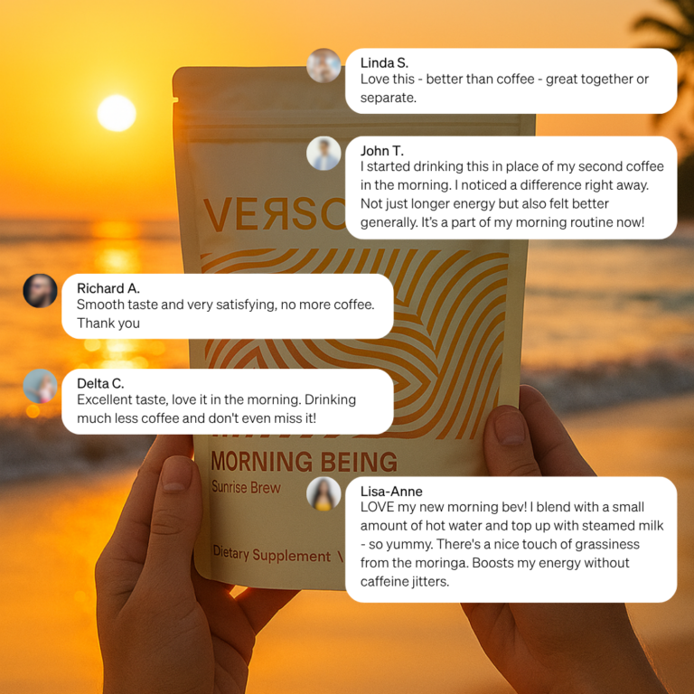 Morning Being was created by a longevity-focused health brand called VERSO, known for formulating research-backed supplements for energy, sleep, and healthy aging. Instead of using caffeine, they created a formula focused on all-day energy, supporting lasting performance and whole-body health benefits.