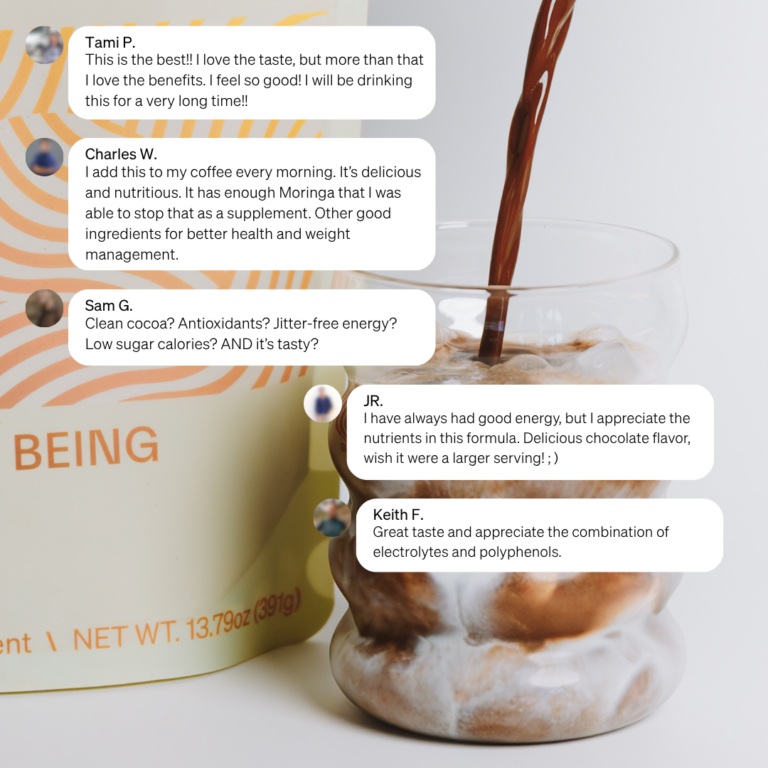 Morning Being isn’t only about mornings. Its ingredients, especially moringa and cacao polyphenols have long-term benefits for heart, brain, and metabolic health.